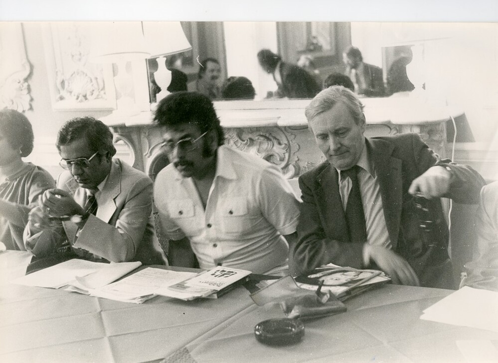Scope and ContentBlack and white photograph of Tony Benn and Rudy Narayan, barrister and civil rights activist who protested about racial discrimination against black barristers.