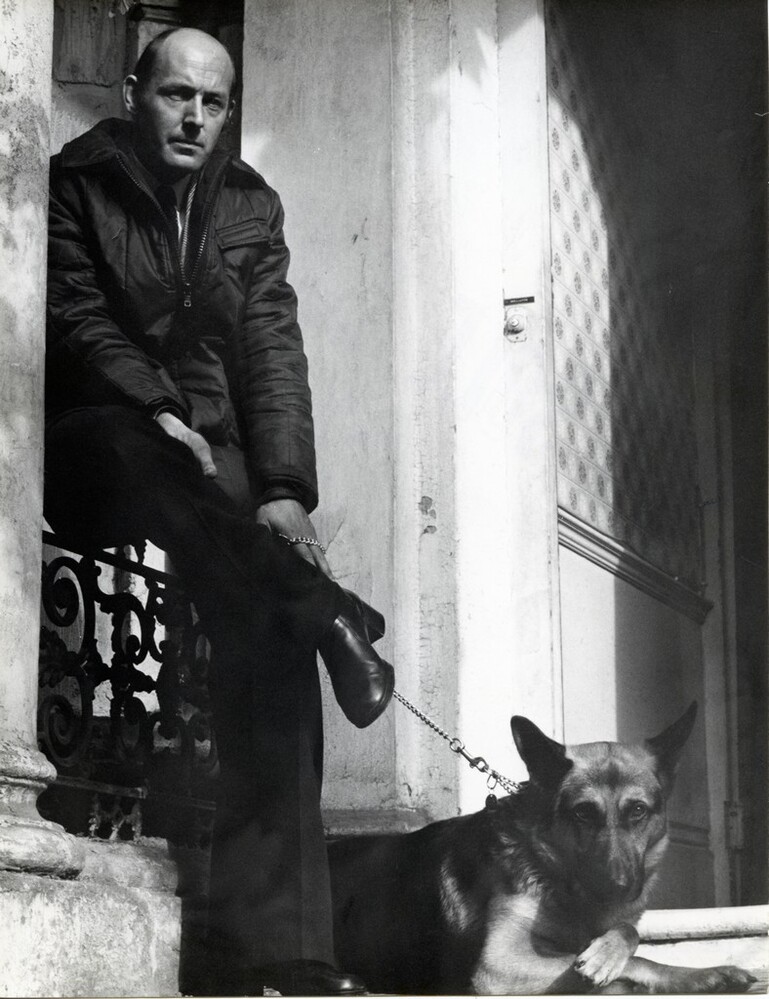 Scope and ContentBlack and white photograph of a security guard outside house from which squatters have been evicted, Sutherland Avenue W9