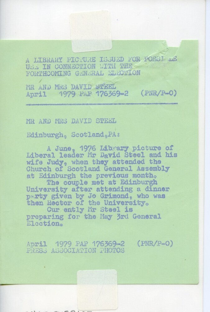 Scope and ContentBlack and white photograph of David Steel MP, Leader of the Liberal Party and his wife, Judith