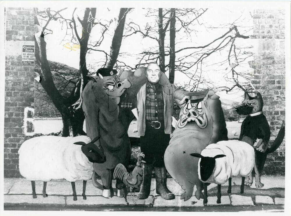 Scope and ContentBlack and white photomontage with the head of John Silkin, Minister of Agriculture, Fisheries and Food, superimposed on farmer's body and surrounded by cartoon animals