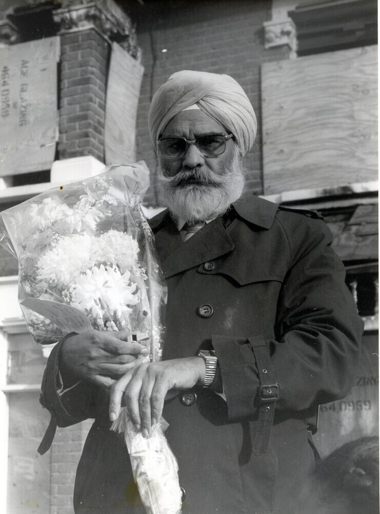 Scope and ContentBlack and white photograph of an unidentified Sikh man carrying flowers