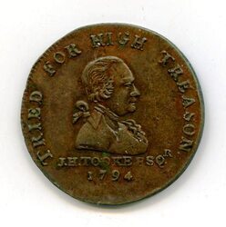 Scope and ContentMedal commemorating the aquittal of John Horne Tooke for high treason. Front: Portrait of Hooke with the text 'JH Tooke 1794. Tried for High Treason'. Reverse: ‘Acquitted by his jury’ and ‘Council Hon. T Erskine, V Gibbs Esq’.