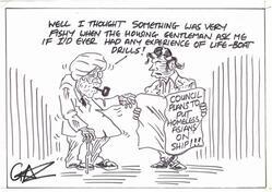 TitleCartoon - Well I thought something was very fishy when the housing gentleman ask me if I'd ever had any experience of life-boat drills!, by Gaz